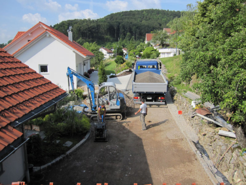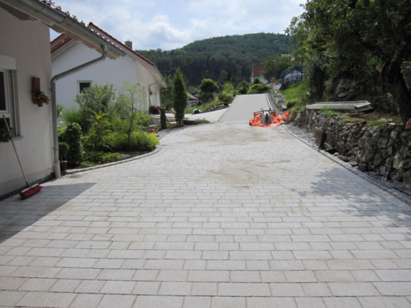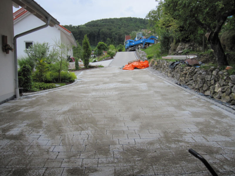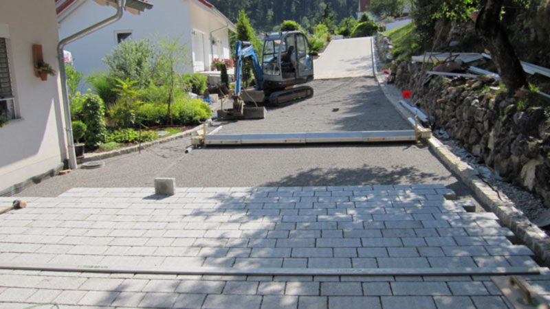 Der Hofplatz- wird vom Bauunternehmen-Schmidt gepflastert.